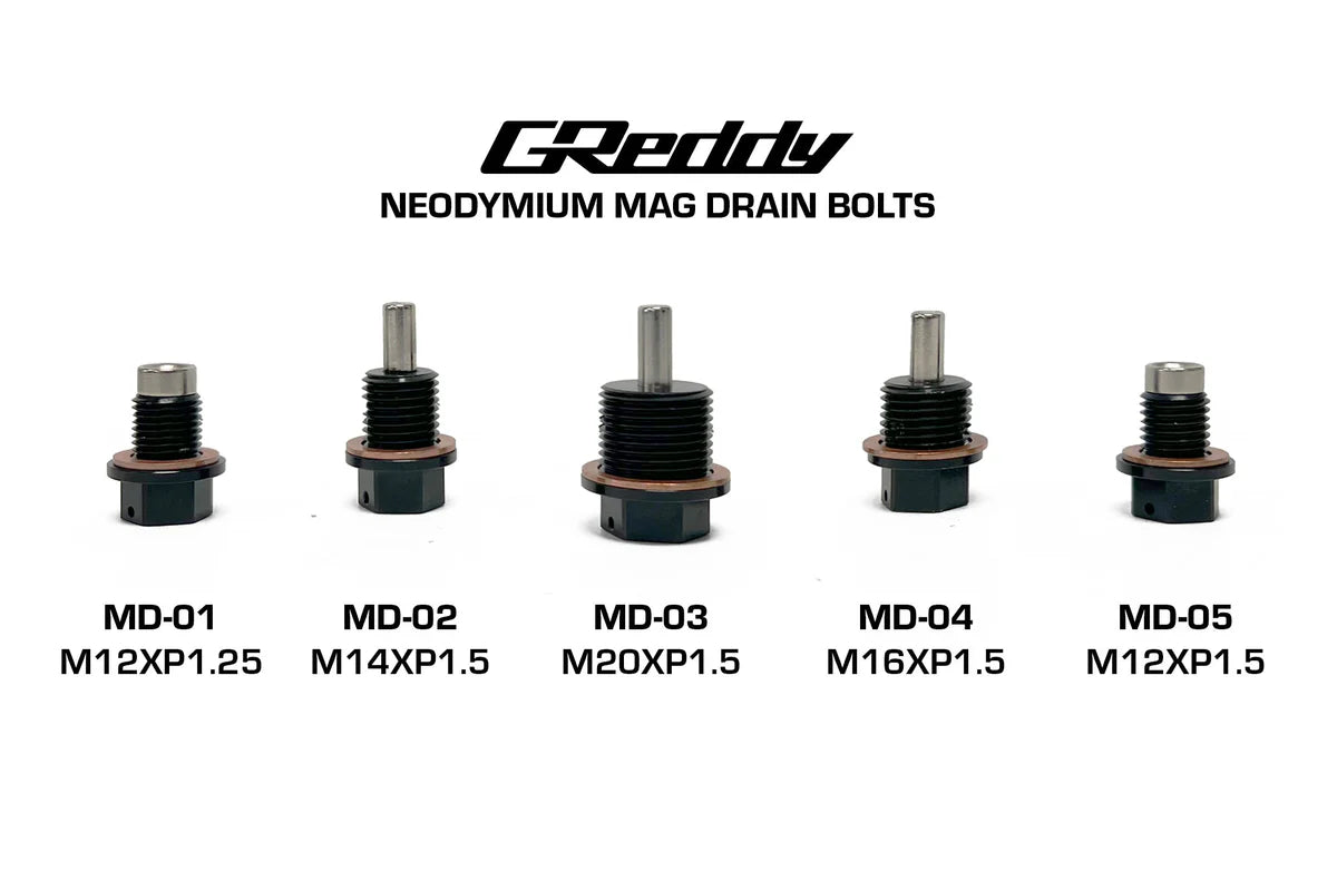 The GReddy Magnetic Oil Drain Plug is a powerful neodymium magnet.  The Neodymium magnet is one of the most powerful magnets on the market. The hard anodized aluminum drain plugs are available in three popular sizes to match most Japanese vehicles.  By using the "GReddy Magdrain" plug, you can help reduce the amount of abrasive materials in your engine, while extending the life of your engine.