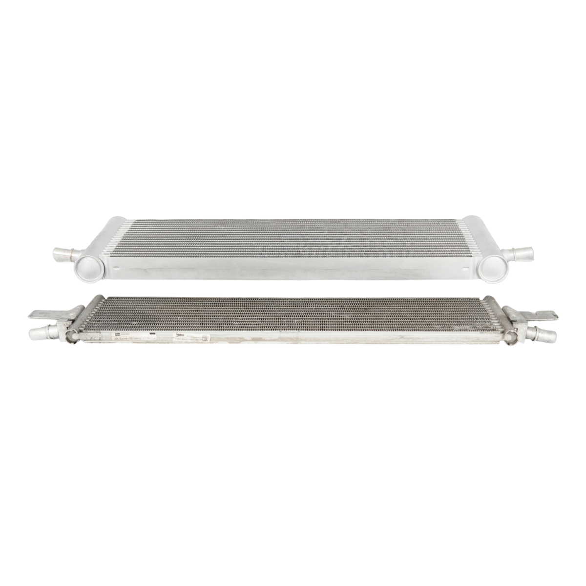 The 2019+ BMW M340i/Z4 and GR Supra models come with an external liquid-to-air transmission cooler. However, for tuned cars, the generated heat can often exceed the OE cooler's capacity. Recognizing this, our engineers redesigned the transmission cooler's core, increasing its volume by 184% and the cooling surface area by 176% while maintaining similar fluid pressures.