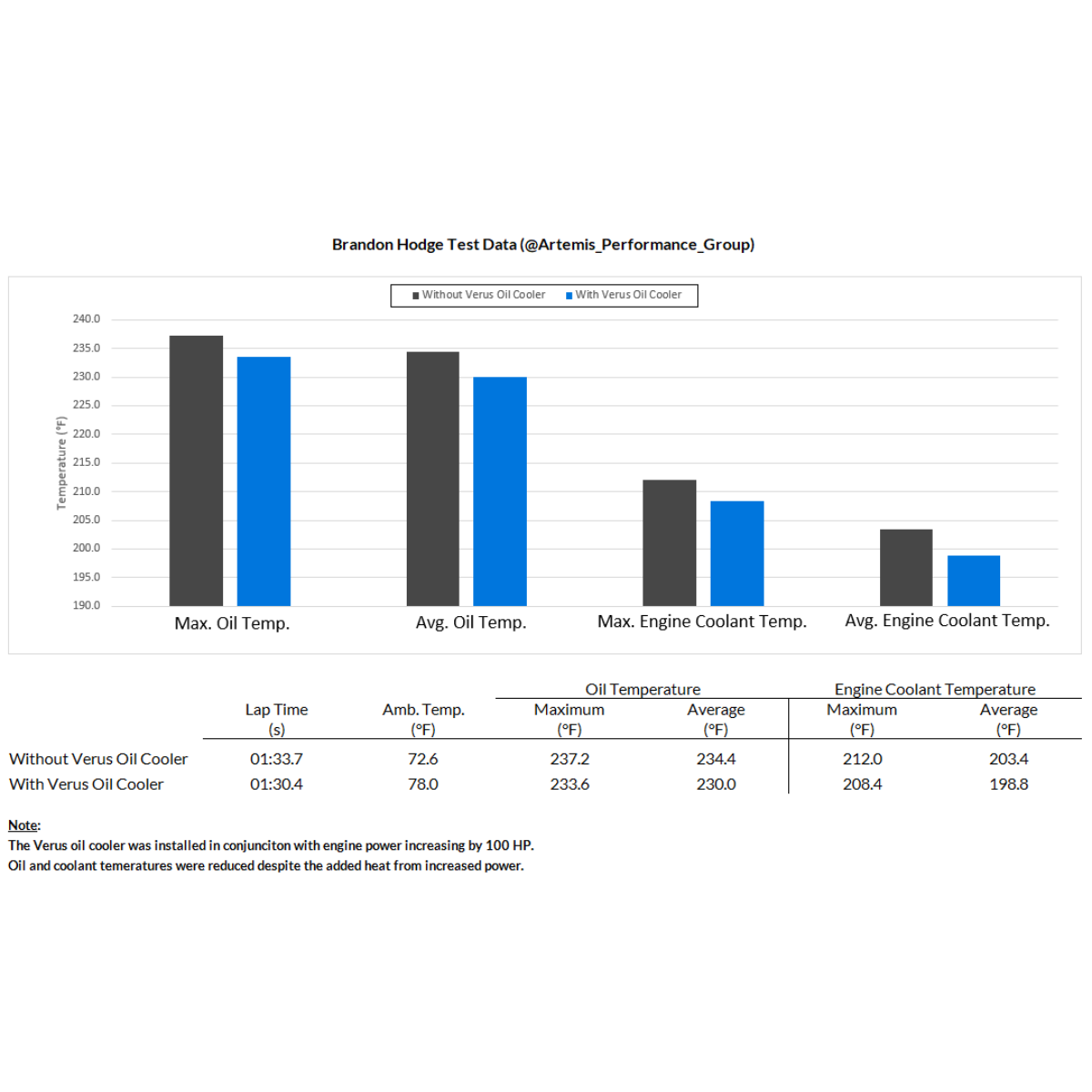 Through on-track data with a variety of drivers, we found the oil cooler to work very well on the car, dramatically reducing both oil and coolant temperatures and improving overall cooling efficiency.