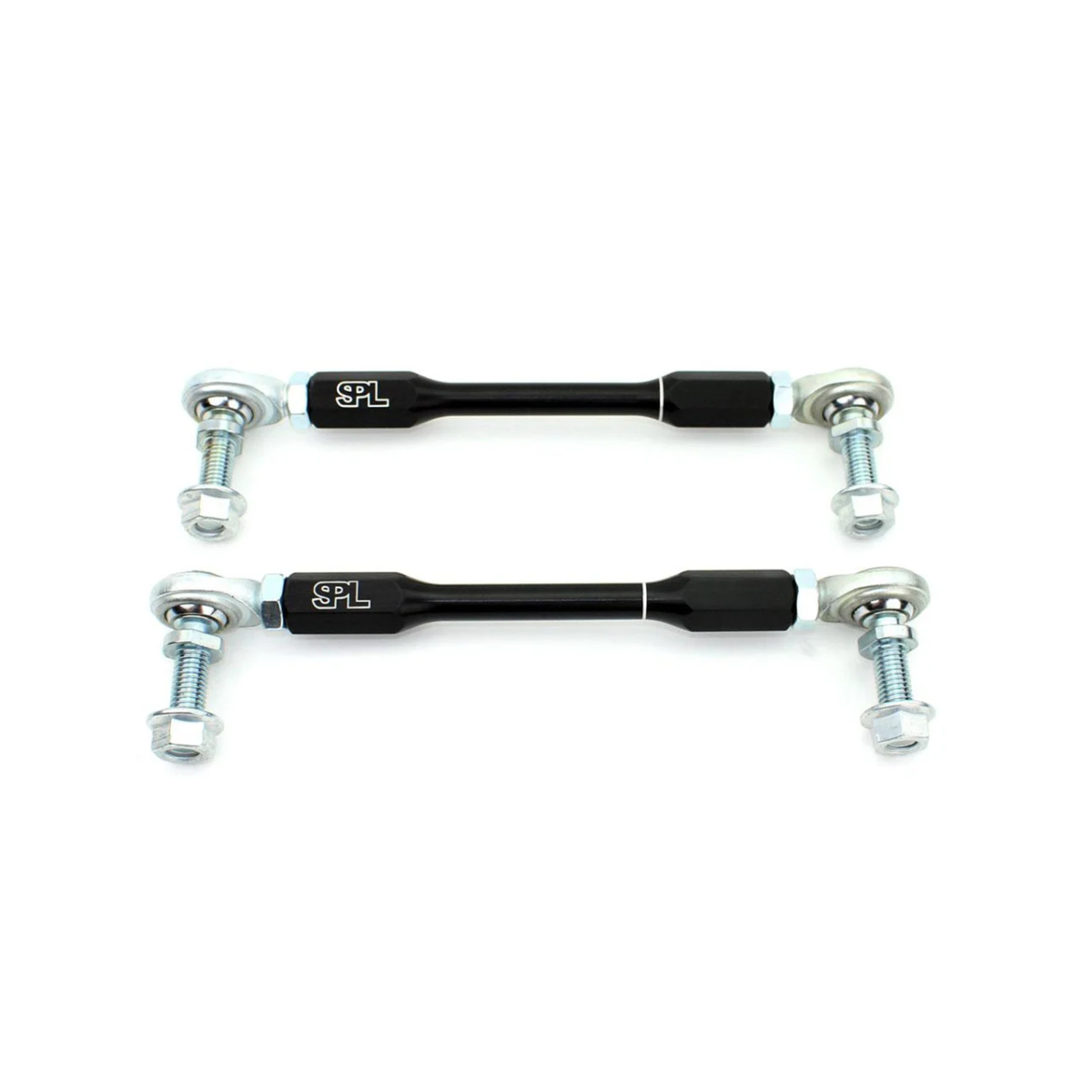 SPL Parts PRO Front Endlinks (FE) for the GR86/FRS/BRZ/08+WRX feature massive 2-piece Teflon lined FK 1/2" bearings to provide the highest load capacity for use with stiffer aftermarket sway bars. Custom heat treated Chromoly High Misalignment Studs connect to the sway bar and strut and offer extreme articulation capability (65deg) to prevent the endlink from binding when used with different adjustment holes on aftermarket sway bars. This version is recommended when using OEM Front Lower Control Arms and OEM front struts. Some aftermarket coilovers move the upper strut mount slightly and can cause interference with the sway bar endlink and our adjustable Lower Control arm and for those applications we recommend the short version found HERE.